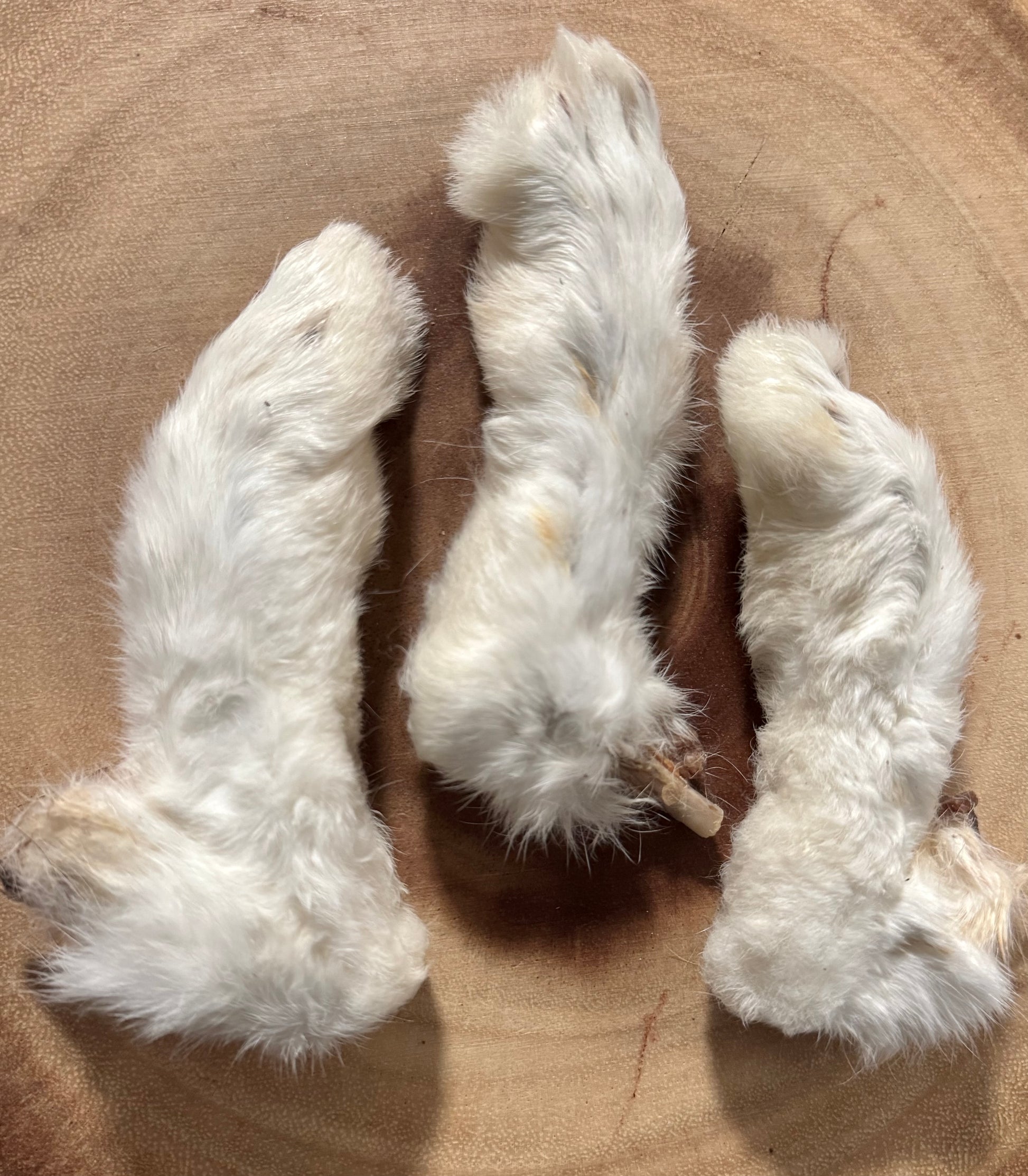 Dried Rabbit feet are a healthy, delicious nutrient dense dental Chew for dogs and cats.